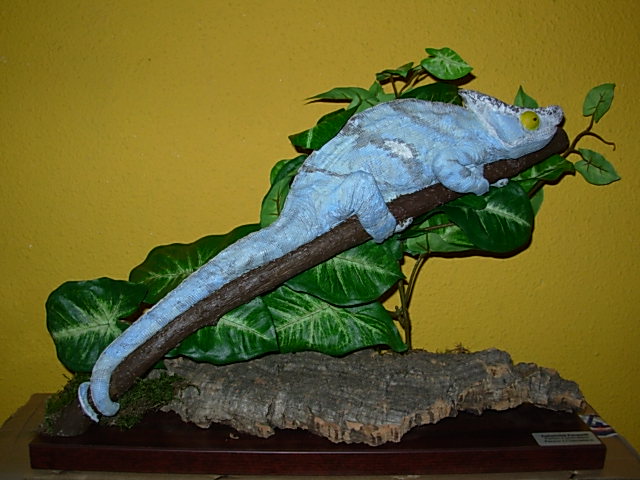 El premio ha consistido en una maravillosa réplica a tamaño real y con todo lujo de detalles de un calumma parsonii. El camaleón de Parson es el más grande de la familia. Actualmente se encuentra muy protegido y el convenio internacional para el tráfico de especies no permite la salida de ningún ejemplar de Madagascar, por lo que todos los que se encuentran fuera de ese país, han sido criados en cautividad. La dificultad de su reproducción fuera de su medio natural lleva consigo un desorbitado precio de los ejemplares. Este regalo va a permitir que en mi casa haya una especie de homenaje a este peculiar camaleón.